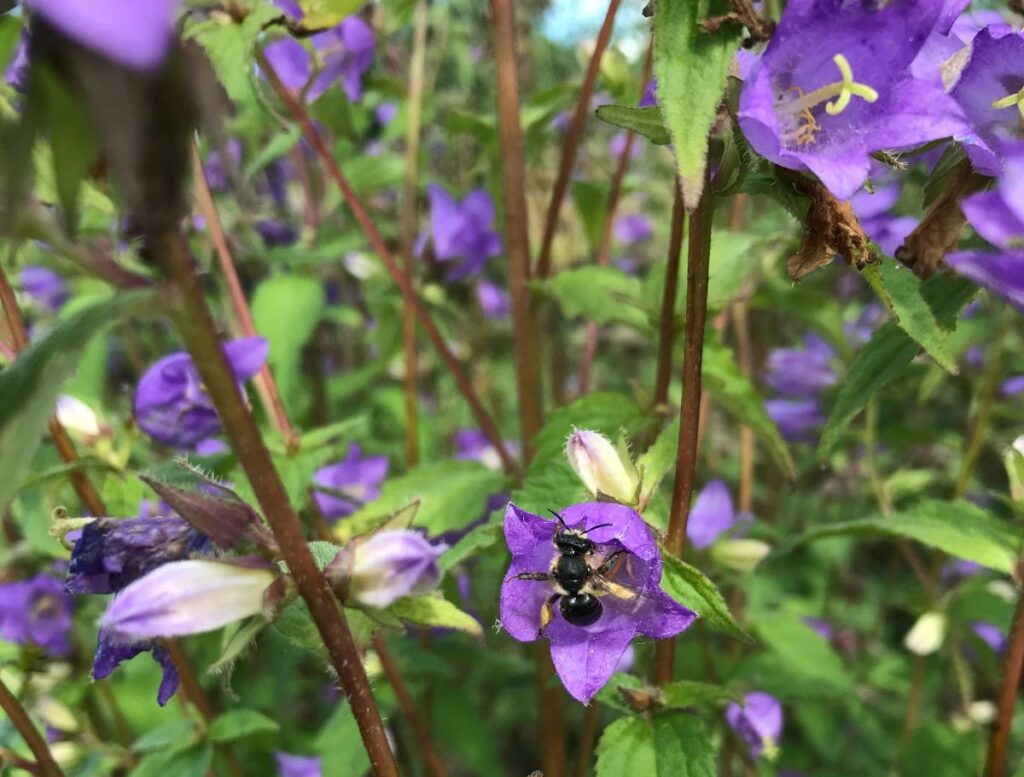 Tip: Kijk ‘s avonds eens in de bloemen, er is best een kans dat je slapende klokjesbijen (Chelostoma) ziet, een schattig gezicht.