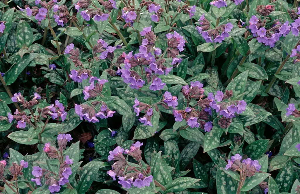Deze inheemse plant heeft prachtige paarse en violette bloemen en vooral ook mooie bladeren! Gevlekt longkruid is een voorjaarsbloeier waar wilde bijen zoals de gewone sachembij (Anthophora plumipes) dol op zijn. Bosplant die van (half)schaduw en vocht houdt.