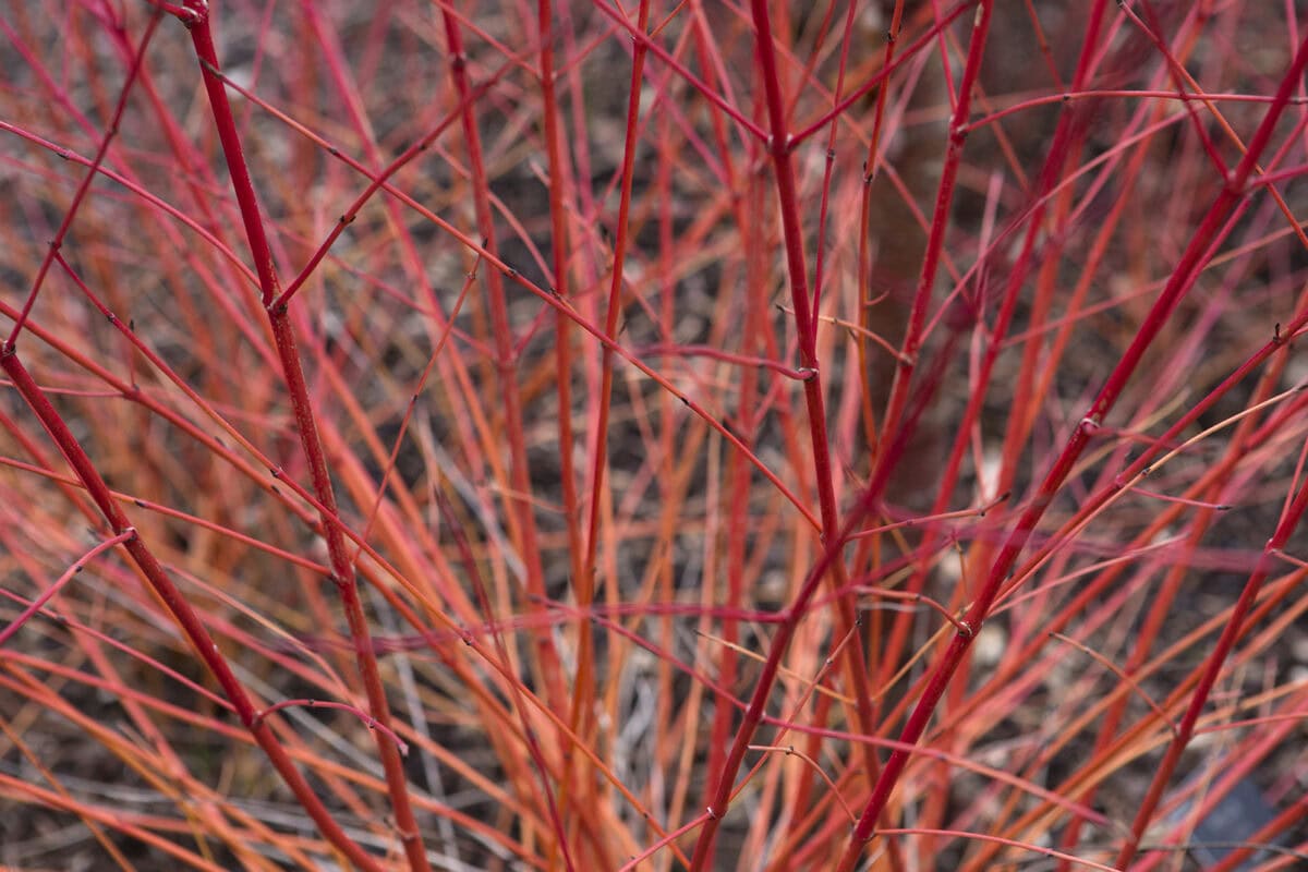 Cornus sanguinea ‘Anny’s Winter Orange’, oftewel rode kornoelje, is een sterke, meerstammige struik die goed bestand is tegen de elementen. Het is niet voor niets dat je hem vaak aan bosranden ziet. Hij vlamt in de winter op met intens gekleurde rood-oranje takken. In de zomer trekt hij met zijn kleine witte bloemetjes veel vlinders aan. In het najaar wordt hij bezocht door de vogels, die graag snoepen van de donkerpaarse bessen.